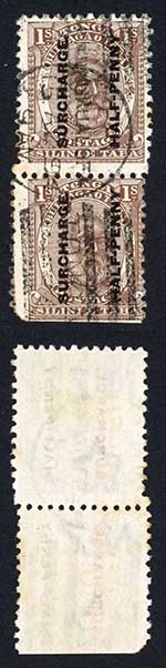 Tonga SG30 1d on 2 1/2d vermilion Mint (no gum) Cat 200 pounds