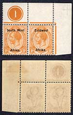 SWA SG7 1/- Orange-yellow opt Zuid-West Plate Pair U/M (mounted in the margin)