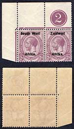 SWA SG22 1/- opt Zuid west (11mm) U/M Plate Pair (mounted in the margin)