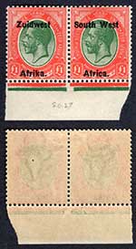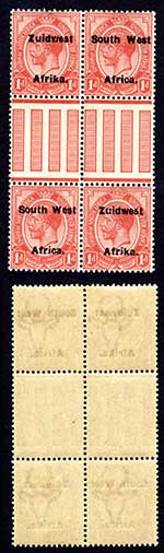 SWA SG29 1/2d opt Zuid west (12mm) 7 stamps U/M Marginal Gutter Block of Eight