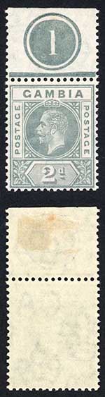 Gambia SG89 2d Greyish-slate Wmk Mult CA Plate Number Example U/M