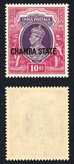 Chamba SG70 KGVI 5r Green and Blue U/M (toned) Cat 60 pounds