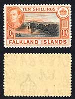 Falkland Is SG162 10/- Black and Orange-brown M/M Cat 200 pounds