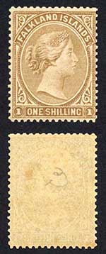 Falkland Is SG4 1/- Bistre-brown No Wmk Mint M/M Cat 90 pounds