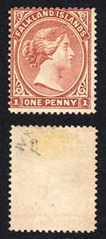 Falkland Is SG11 1d Red Brown wmk F (upright) No Gum Cat 350 pounds