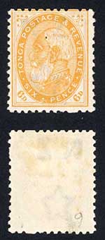 Tonga SG9 6d Yellow Orange Mint (no gum) Cat 25 pounds