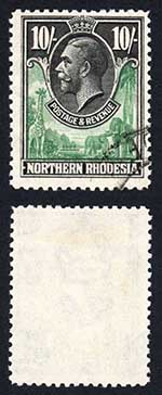 Northern Rhodesia SG16 10/- Green and Black used Cat 110 pounds