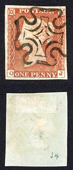 1841 Penny Red (OF) Plate 34 Fine Four Margins SUPERB CROSS Cat 60 pounds