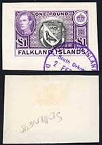 Falkland Is Dep SGZ99 One Pound on piece part South Orkneys CDS Cat 150 pounds