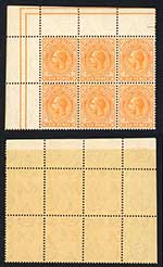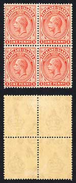 KUT SG17s KEVII 1/2a Wmk Mult Crown opt Specimen (locally) Block (odd tone spot)