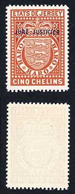 Jersey Revenue BF3 5/- brown opt Jure-Justicier U/M