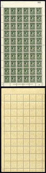 Gibraltar SG121 1/2d Deep Green Pane of 60 U/M