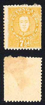 Tonga SG35 7 1/2d Orange-yellow Mint (small part gum) Cat 50 pounds