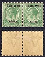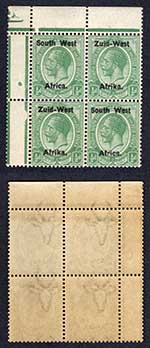 SWA SG1 1/2d Green opt Zuid-west Under inked overprint U/M Marginal Block