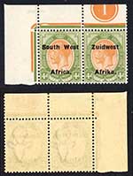 SWA SG39 10/- opt Zuid west (12mm) M/M (faint toning) Marginal Pair Cat 120 pounds