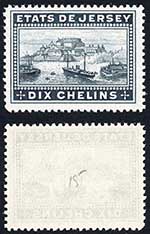 Jersey Revenue BF15 10/- Dull Blue Perf 14.5 U/M
