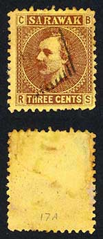 Sarawak SG27 1c on 3c Brown/yellow Block (no gum as normal) With WMK Cat 40++pounds