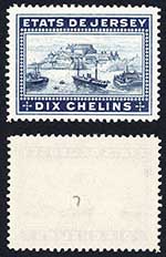 Jersey Revenue BF15 10/- Dull Blue Perf 14.5 no gum