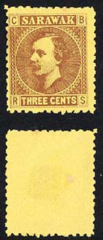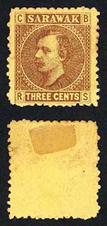 Sarawak SG1 3c Brown/yellow Mint (no gum as normal) Cat 55 pounds