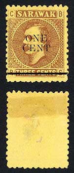 Sarawak SG27 1c on 3c Brown/yellow Mint (no gum as normal) Cat 10 pounds