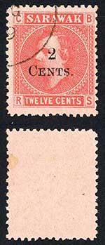 Sarawak SG33 2c on 12c Left stamp with Small s in cents