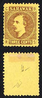 Sarawak SG2 3c Brown/yellow Mint (no gum as normal) Cat 5 pounds