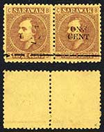 Sarawak SG27 1c on 3c Brown/yellow part of left hand overprint missing