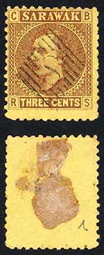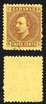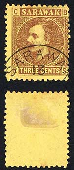 Sarawak SG2 3c Brown/yellow CDS used Cat 7 pounds