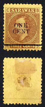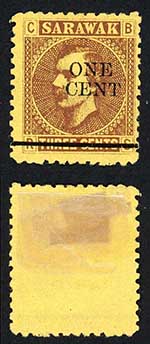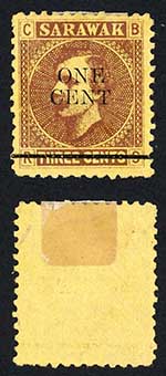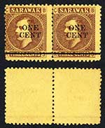 Sarawak SG27a 1c on 3c Brown/yellow Stop after Three Mint Cat 85 pounds in a Pair