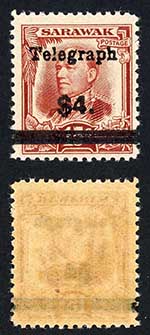 Sarawak SGT21 4 dollar Opt Telegraph Variety Broken L U/M Cat 18 pounds
