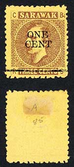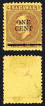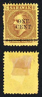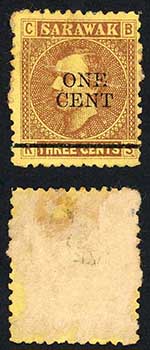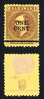 Sarawak SG27 1c on 3c Brown/yellow Mint (no gum as normal) Cat 10 pounds