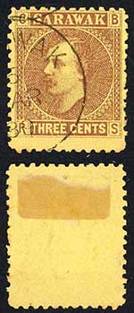 Sarawak SG2 3c Brown/yellow CDS used Cat 7 pounds