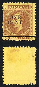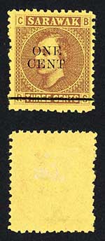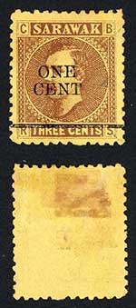 Sarawak SG27 1c on 3c Brown/yellow Mint (no gum as normal) Cat 10 pounds