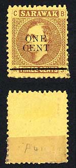 Sarawak SG27 1c on 3c Brown/yellow Mint (no gum as normal) Cat 10 pounds