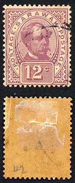 Sarawak SG26a 5c on 12c no stop after c M/M (toned and faded) Cat 200 pounds