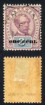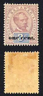 Sarawak SG23 1c on 3c (2nd type) Mint lower n in cents