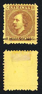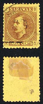 Sarawak SG2 3c Brown/yellow Manuscript Cancel