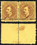 Sarawak SG27 1c on 3c Brown/yellow Overprint partially omitted