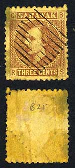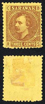 Sarawak SG2 3c Brown/yellow 9 Bar pmk RARE on this issue