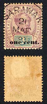 Sarawak SG23 1c on 3c (2nd type) 21 March 1892 CDS