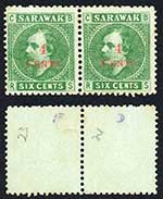 Sarawak SG34 4c on 6c Green (Deep) (no gum as normal) Cat 130 pounds