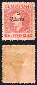 Sarawak SG26a 5c on 12c no stop after c M/M (toned) Cat 200 pounds