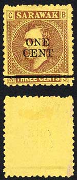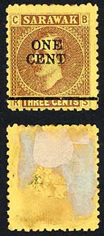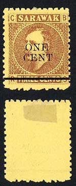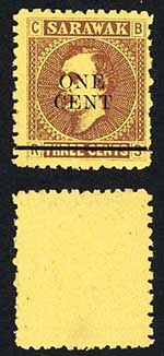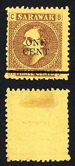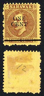 Sarawak SG27 1c on 3c Brown/yellow Mint (no gum as normal) Cat 10 pounds