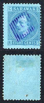 Sarawak SG6 8c Bright Blue/blue with S in Diamond cancel in VIOLET