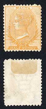 Malta SG15 1/2d Yellow-orange Perf 12.5 Wmk CC Mint no gum Cat 450 pounds