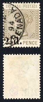 Grenada SG47 2 1/2d on 8d CDS used Misplaced surcharge