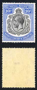 Tanganyika SG106 10/- Deep Blue U/M Cat 110+ pounds