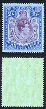 Bermuda SG116 2/- Perf 14 Deep Purple and Ultramarine/Grey Blue M/M Cat 100