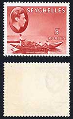 Seychelles SG149a 5r Red Ordinary Paper M/M Cat 38 pounds