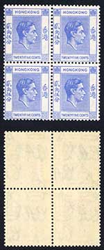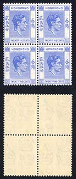 Hong Kong SG1491938-46 25c bright blue Superb U/M Block Cat 116+ pounds